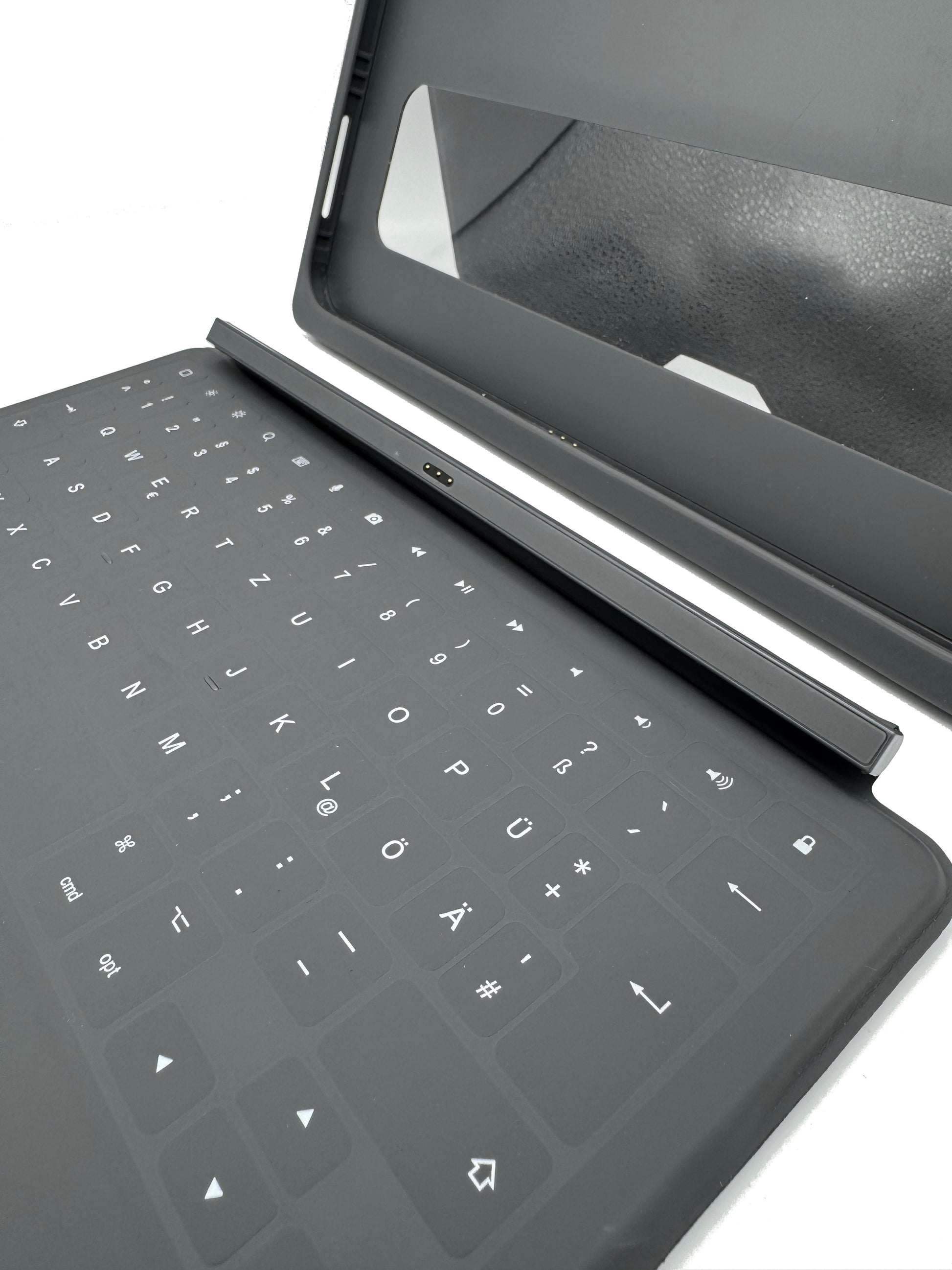 Die Tastatur wird automatisch erkannt – es ist kein Bluetooth und kein Akku nötig.